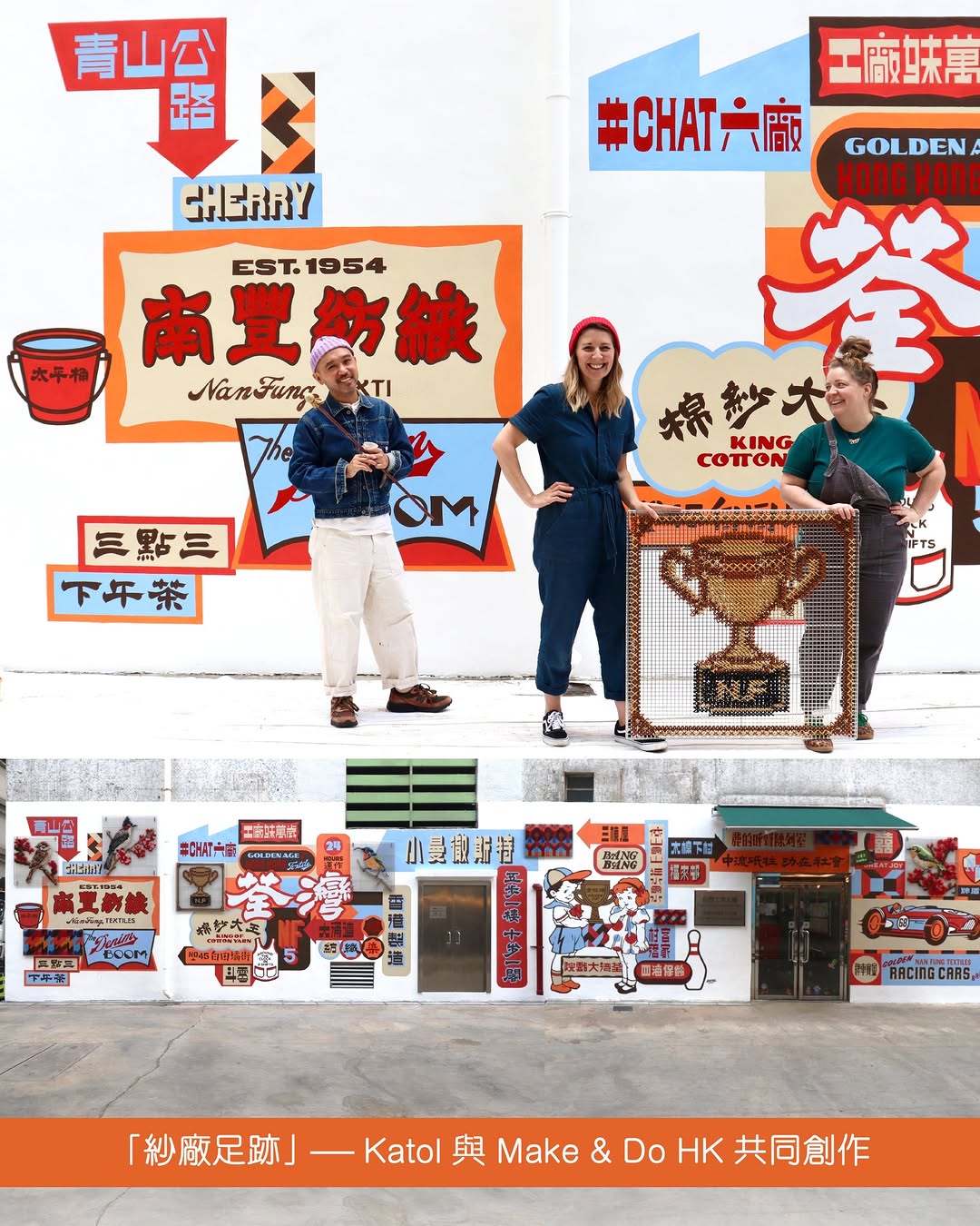壁畫分為三部分,第一部分──「紗廠足跡」,由Katol以不同字體呈現舊日香港紡織業的故事、南豐紗廠昔日的歷史、當年今日荃灣有趣的社區元素;Make & Do HK則編織一系列香港常見雀鳥反映本地獨特的生態面貌。