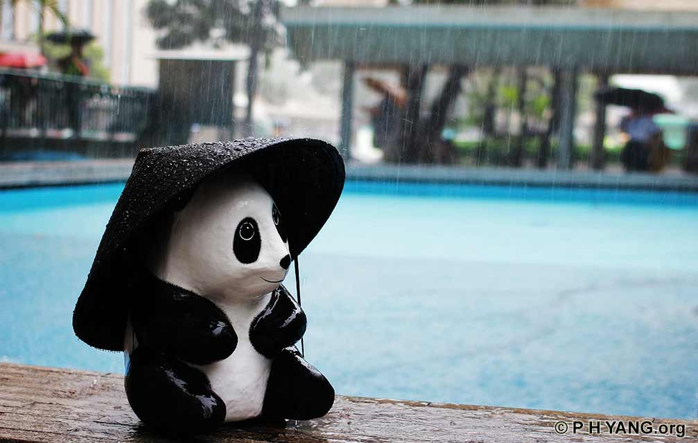. 冒著傾盆大雨,在皇后像廣場捕捉熊貓「翩翩起舞」的瞬間