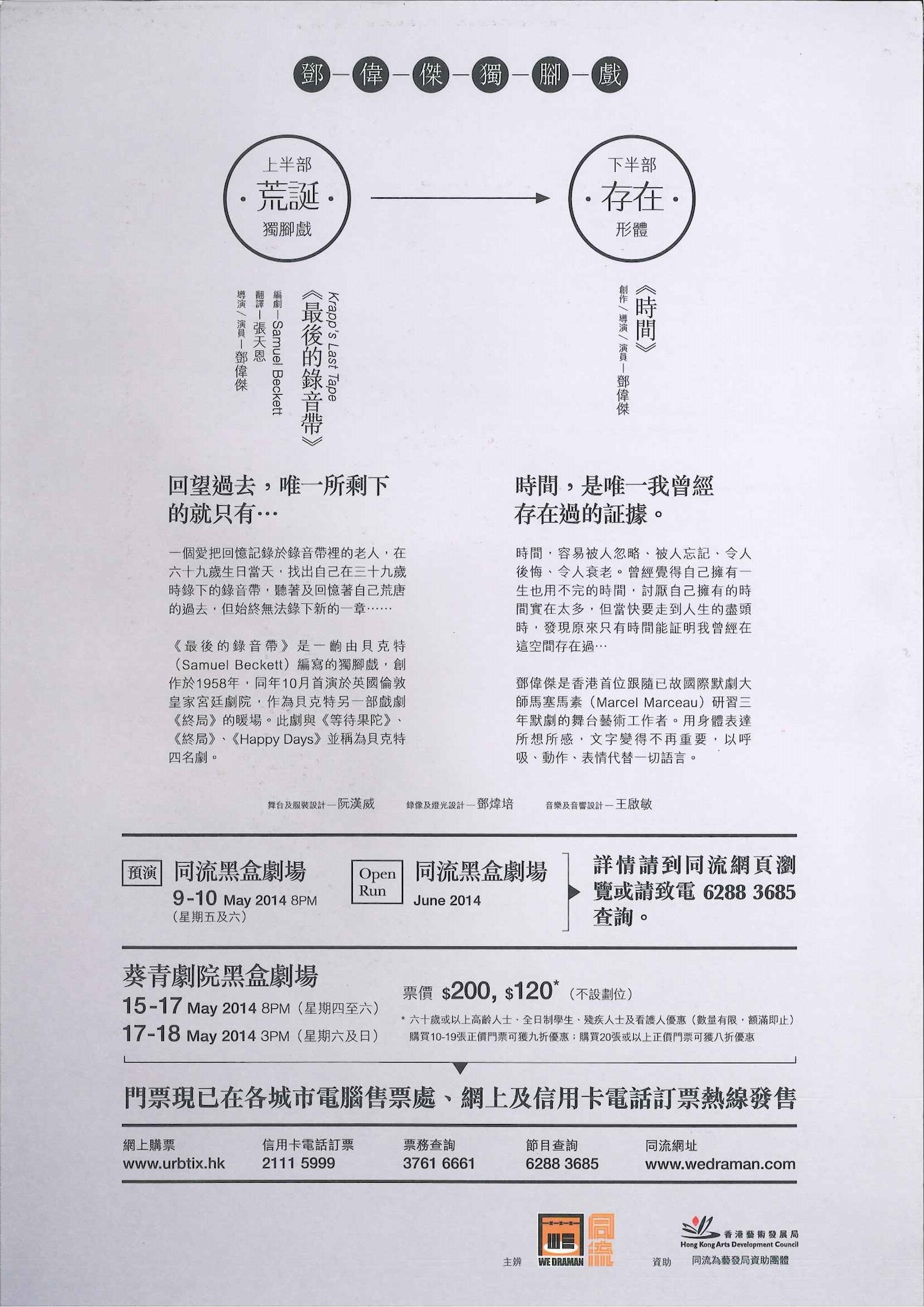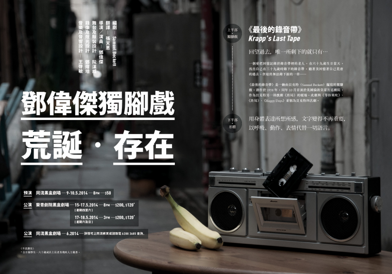 《最後的錄音帶》是一齣由貝克特(Samuel Beckett)編寫的獨腳戲,創作於1958年,同年10月首演於英國倫敦皇家宮廷劇院,作為貝克特另一部戲劇《終局》的暖場。此劇與《等待果陀》、《終局》、《Happy Days》並稱為貝克特四名劇。