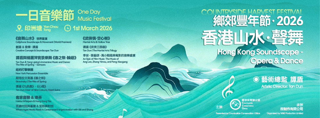 環境及生態局轄下鄉郊保育辦公室(鄉郊辦)將於2026年3月1日舉辦「鄉郊豐年節2026:自然聲景 一日音樂節」,選址於獲國家生態環境部評選為全國「美麗海灣優秀案例」的香港大鵬灣之中的印洲塘荔枝窩。是次活動亦是第54屆香港藝術節「加料節目」之一。