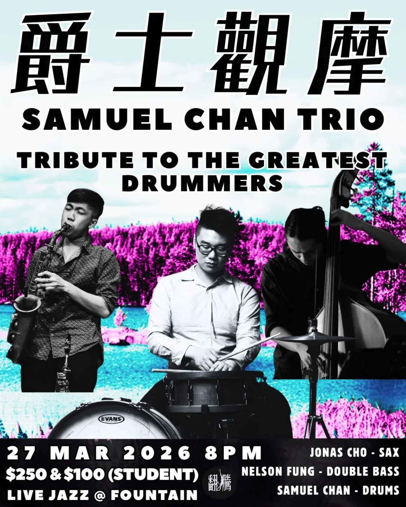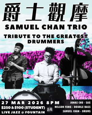 Samuel Chan 可以話係香港頂尖嘅爵士鼓手之一。佢以前喺香港同紐約都跟過唔少勁嘅爵士老師學嘢,吸收晒唔同文化同風格,所以佢打鼓嗰種感覺同紐約既聖嬰好連接到 。今次呢場 show,其實係佢向啲有份塑造modern jazz drumming嘅大師致敬,用音樂去重溫嗰啲勁有能量同創意嘅artist。