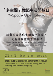 「多空間」舞蹈中心開放日回來了!如果你想學舞,但不知如何選擇課程,來「多空間」就對了。我們歡迎不同年齡和程度的學員,無論是小朋友、成人或長者,都能在這裡找到合適的舞蹈課程。這次開放日提供免費課程體驗,讓你親身感受「多空間」溫暖友善的教學氛圍與專業老師的指導。無論你是初學者還是已有基礎,都可以來試試看,找回對舞蹈的熱情或開展新的興趣。免費課程包括:與馬才和共舞、趣味當代舞及兒童舞蹈創作,活動詳情請留意宣傳單張及最新消息!名額有限,快來報名吧!