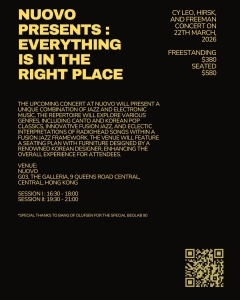 Join us for an immersive concert experience blending jazz, electronic music, and innovative design. Featuring the harmonica virtuoso Cy Leo @cy_leo , award-winning electronic producer hirsk @hirsk_ and pianist Freeman Lok @freemanlok with a special soundscape by Bang & Olufsen's Beolab 90 @bangolufsenhongkong