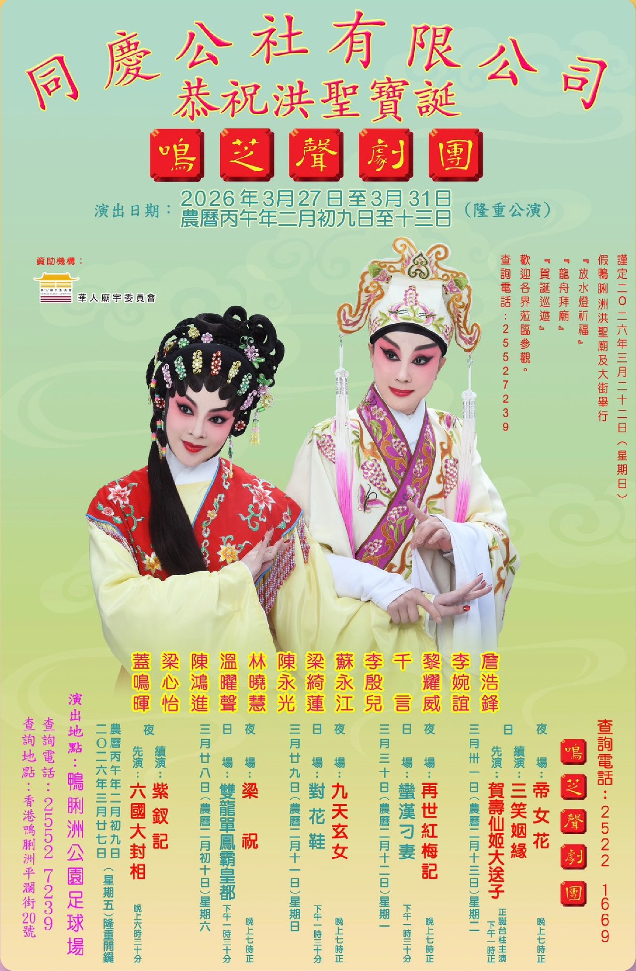 先演《賀壽仙姬大送子》,續演《三笑姻緣》( 正誕台柱主演 )