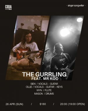 特別嘉賓 Mr Koo(Ollie Andrew Koo Rodgers)以其帶有懷舊色彩的創作而聞名,早期靈感源自海岸與夏日意象,近年的作品則延伸至對都市生活與情感經驗的觀察。他的音樂融合 soul、blues、bedroom pop 與 funk,營造出柔軟、略帶朦朧的聲音質地。本次與 The Gurrling 的合作,將使兩人的敘事風格產生新的連結,在不同音樂語彙之間找到自然的交會點。