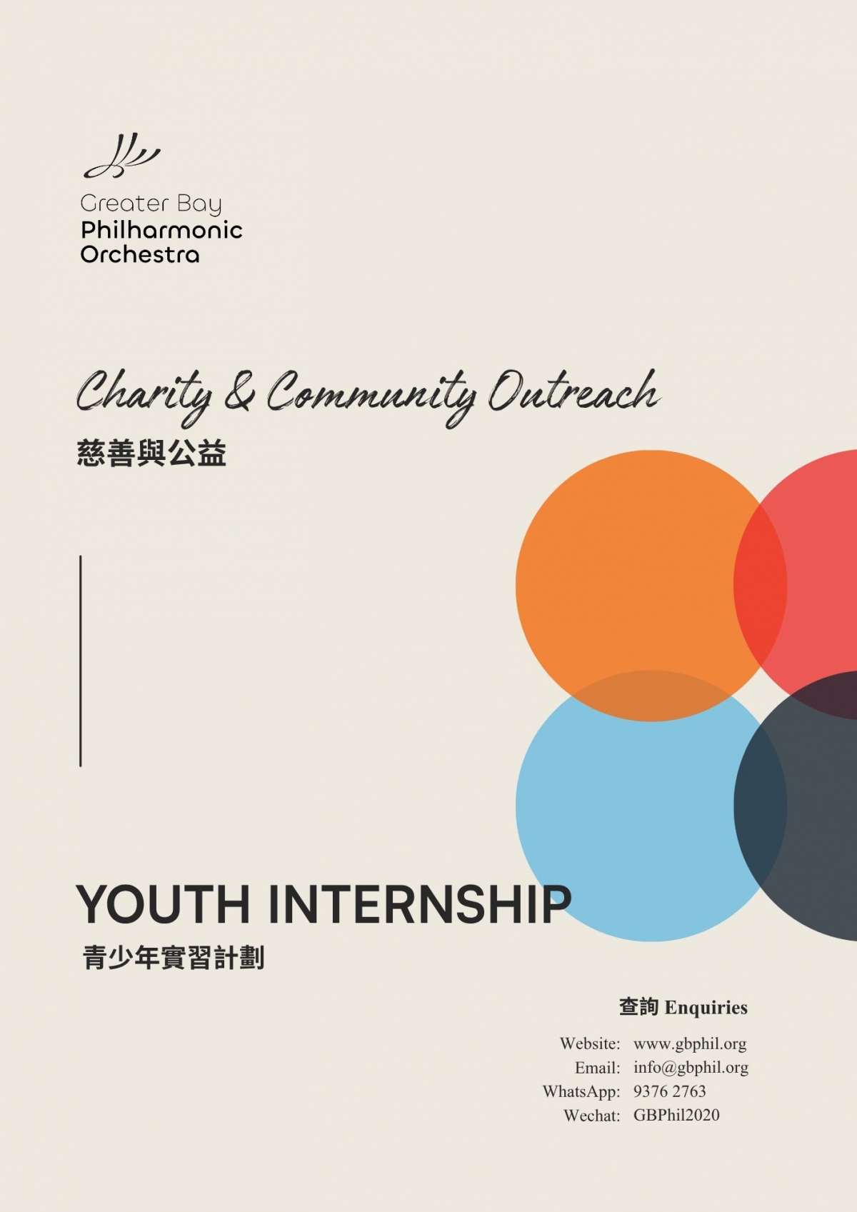 大灣區管弦樂團為基層青少年提供多元藝術管理及音樂相關崗位的實習名額,讓參與者親身體驗樂團運作,累積實戰經驗。實習範疇包括 ( 不限於 ):樂團行政與管理工作市場推廣與社交媒體管理舞台管理與製作支援音樂教育與社區外展報名條件:來自基層學校、資助學校的在校學生 ( 年齡15歲或以上 )對藝術管理或音樂工作有濃厚興趣具備良好溝通及學習態度能參與不少於1個月的實習期
