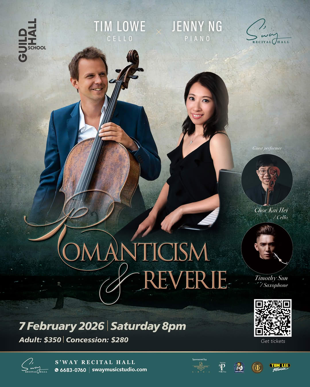 大提琴家 Tim Lowe 與鋼琴家 Jenny Ng 攜手帶領大家經歷一場以音樂跨越時空的故事,沉浸於一個浪漫及充滿夢想的經典樂章。從舒曼的《幻想小品》到拉赫瑪尼諾夫的《無言歌》;在聖桑的《天鵝》與柴可夫斯基的《夜曲》,讓這段音樂對話帶領我們,在浪漫主義的詩意夢境裡幻想。
