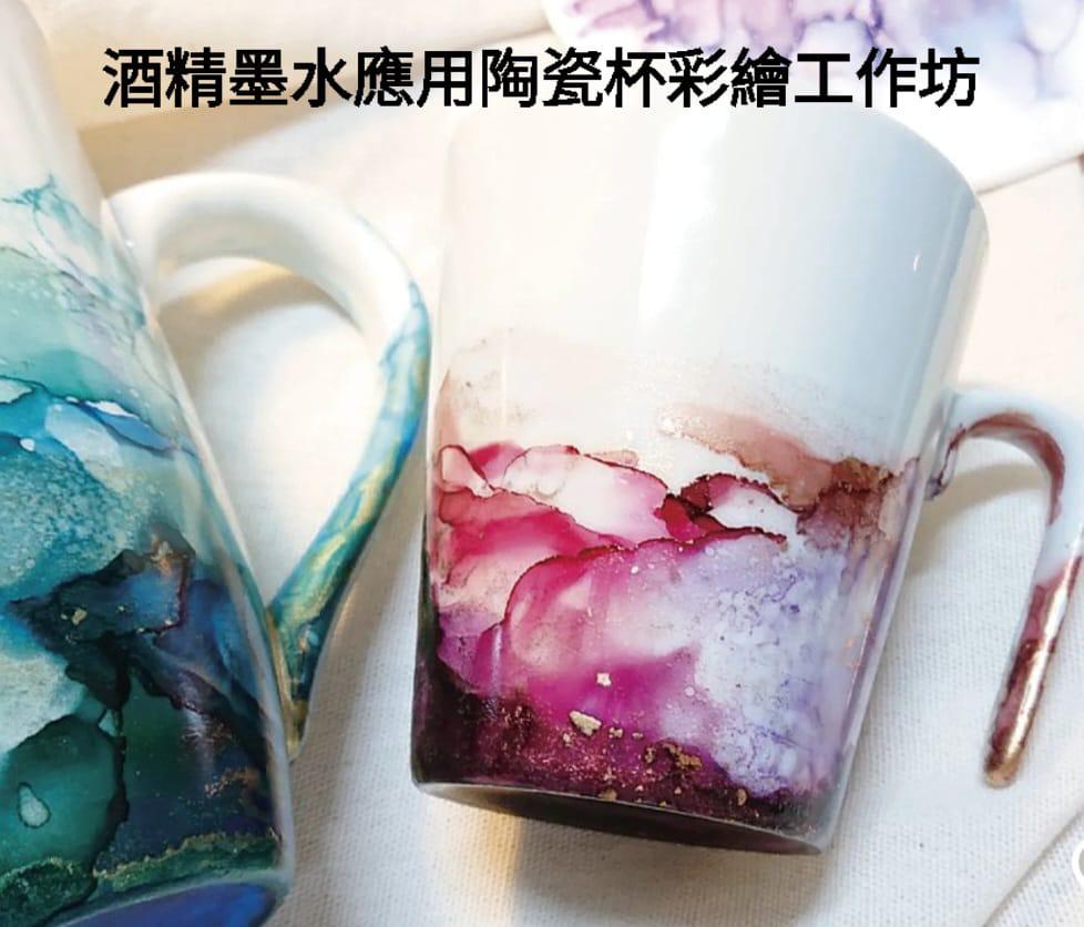 酒精墨水藝術是用風力令酒精流動把墨水散開,創造出不同的效果。酒精墨水畫是一種最具感情特徵及感染力的藝術語言,在陶瓷杯上滴上酒精、顏料及金屬顏料,透過色彩配搭,自然地暈染、擴展、交疊,配合,設計出抽象藝術畫作。色彩不僅僅是點綴生活的美麗,更是繪畫中的語言,讓人愛不釋手!你不需要有繪畫經驗, 無論男女老少,都可以輕鬆暢快地跟著酒精墨水遊走,輕嘗無拘無束的感覺, 玩一次你就會愛上了它! 此工作坊適合沒有繪畫經驗人士參加。