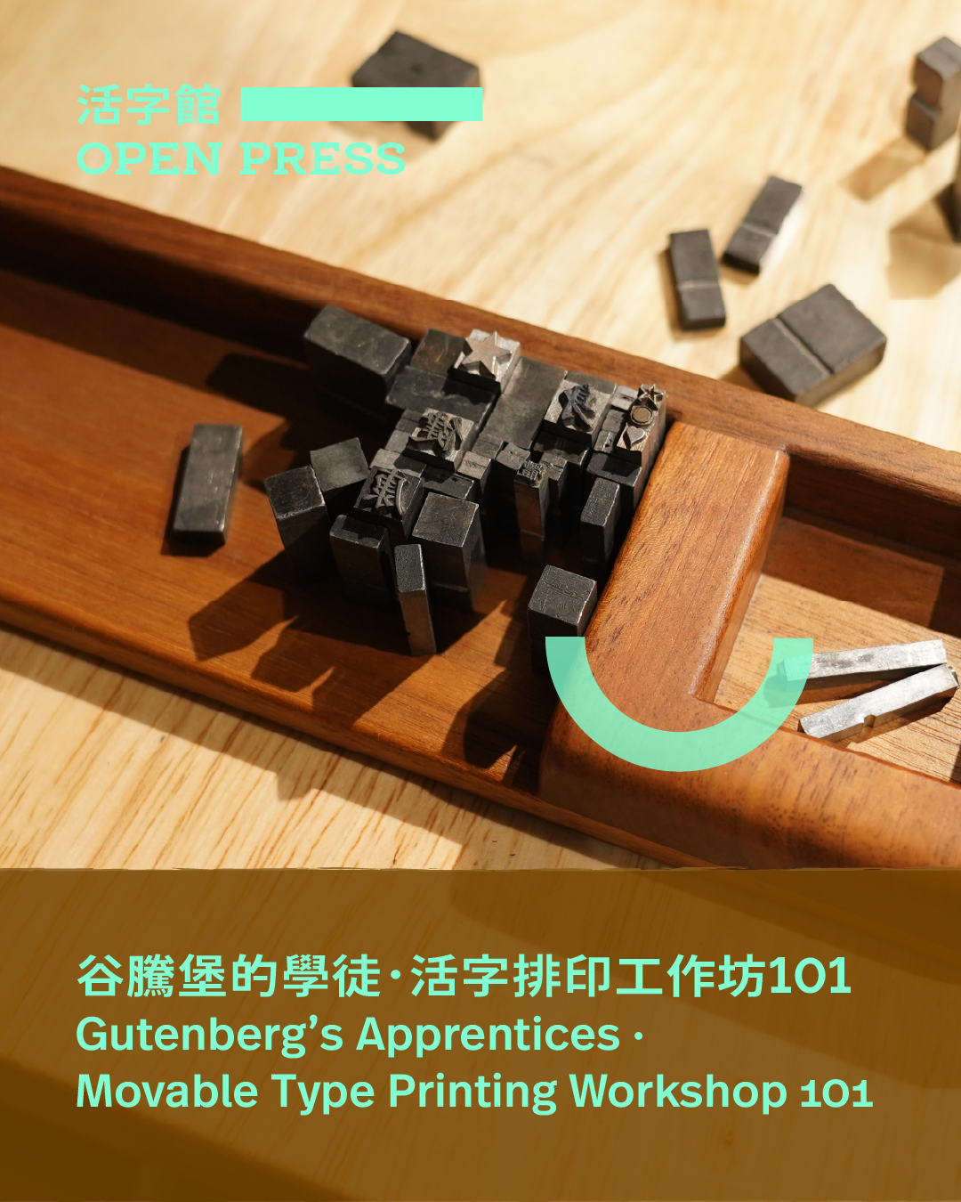 儘然活字印藝已成為 非物質文化遺產,在今天的活字館,你我仍能成為谷騰堡的學徒!在這次初階工作坊裏,參加者將認識活版印藝的基本知識,如字粒結構、字架排列、檢字和鎖版技巧等,再用Adana手搖活版印刷機,印製屬於自己的圖文作品,探索傳統印藝轉化為當代創作的可能性。若你喜歡實體紙品,若你想學習排印技術,萬勿錯過.ᐟ.ᐟ