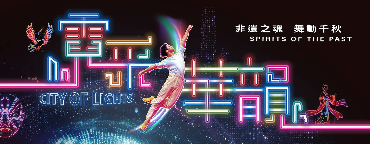 香港霓虹燈設計師阿洛,決心要活化城市被遺忘的舊招牌,喚回香港集體記憶!為尋覓「光」的意義,他穿越光影迷宮,按師傅留下的地圖沿路探索,途中巧遇傳統提線木偶戲的說書人訴說人生哲理,乍見川劇變臉與街舞激情碰撞,依稀聽到苗族鼓聲電流般轟鳴,復見剪紙勾勒出壯麗山河……千年印記在霓虹光芒中幻出異彩。傳承與創新在此無縫交接,青年舞者們用舞步踏出新的層次與溫度。這趟尋根之旅,標誌著科技與藝術的永恆蛻變,讓中華文化綻放持久的生命光輝。
