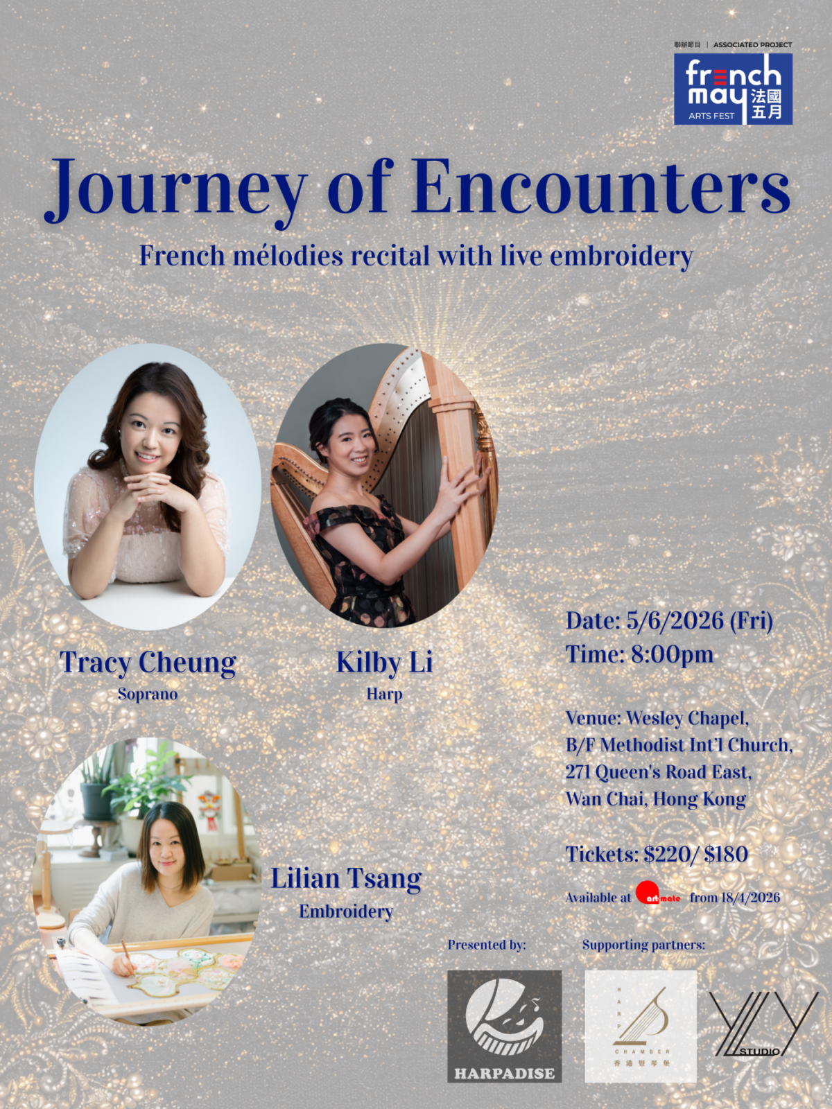 女高音及豎琴法國音樂演奏會,配合現場法式刺繡。