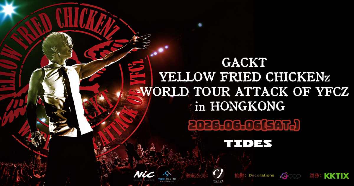 自2011年的世界巡演以來,時隔15年,GACKT將攜YFCz再次決定舉辦世界巡演。第6站的舞臺將來到香港。請親身感受震撼靈魂的舞臺,以及全場融為一體的爆發性能量。