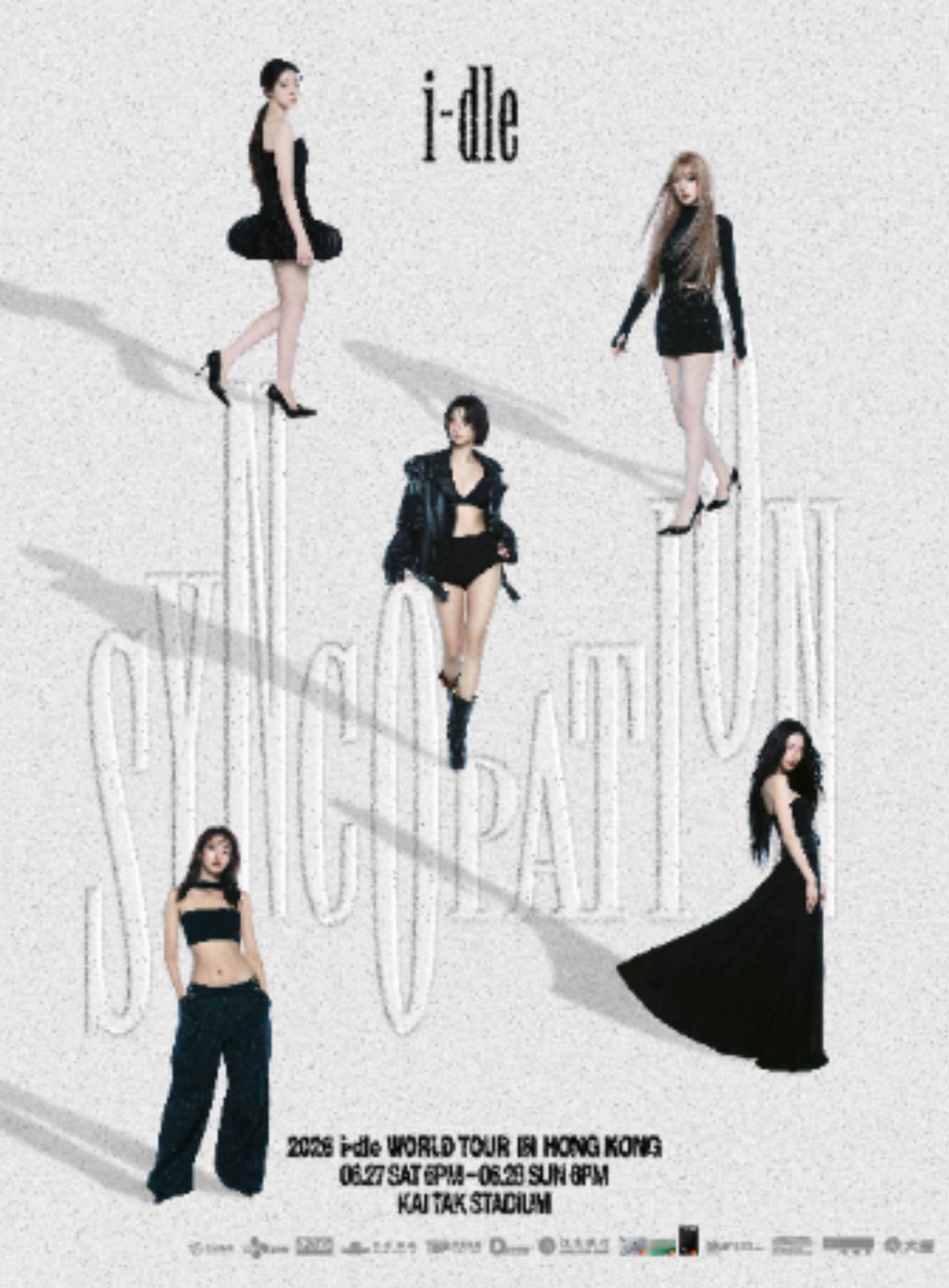 韓國人氣女團i-dle即將於2026年6月27日及28日假啟德主場館舉行演唱會 — 2026 i-dle WORLD TOUR [Syncopation] IN HONG KONG。這將是她們繼2024年8月來港舉行演唱會後,時隔兩年再度訪港開唱,踏上全港最大的演出場地—啟德主場館的舞台,令粉絲熱切期待。票價分為港幣$2,499、$1,999、$1,799、$1,599、$1,399、$999、$799,所有購買$2,499門票的觀眾將可參與演前彩排,獲得香港場專屬禮品一套,並享有優先入場資格。成功在2026年3月27日下午2時 至 2026年3月30日下午1時59分期間於Berriz登記的i-dle OFFICIAL FANCLUB NEVERLAND會員可於2026年4月21日中午12時至晚上6時經快達票(HK TICKETING) 參與會員優先購票。恒生Mastercard信用卡優先購票將於2026年4月22日中午12時至晚上11時59分於快達票(HK TICKETING) 進行。公開售票將於2026年4月23日中午12時透過快達票(HK TICKETING)正式發售。