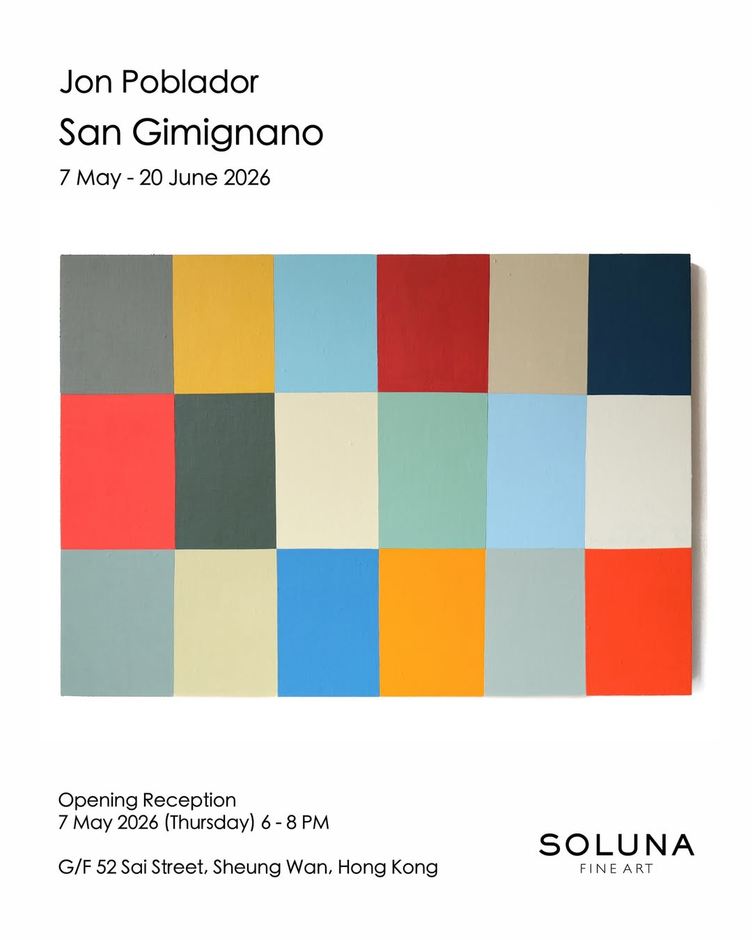 Soluna Fine Art 誠意呈獻居港菲裔美籍當代藝術家 Jon Poblador @jonpoblador 個展「San Gimignano」。靈感源於藝術家去年到訪的意大利小鎮聖吉米尼亞諾,當時他走進一座古老教堂,留下深刻印象的並非建築本身或宗教象徵,而是一種關於色彩與氛圍的整體感受。Poblador的創作一向不著重圖像再現或單一視覺敘事,而這次經驗進一步啟發他,將繪畫轉化為一場關於觀賞本質的深入探索。