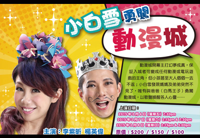 動漫城開幕主打幻夢成真,保証入城者可變成任何動漫或電玩遊戲的主角,但小孩甚至大人個個一去不返;小白雪發現媽媽及弟弟突然不見了,唯有與爸爸(白馬王子)勇闖動漫城,以歌聲喚醒各人心靈……