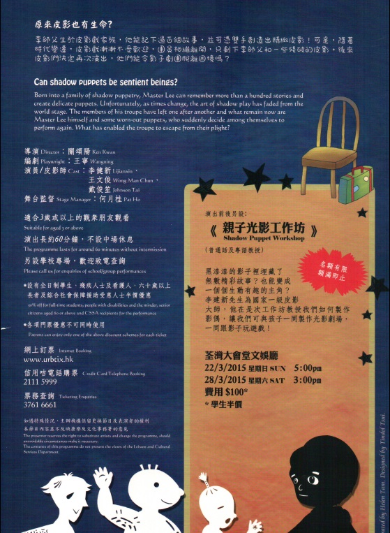 皮影原來也有生命?李師父與影子劇團,創出一個奇幻故事!李師父生於皮影戲家族,肚子裏能記下過百個故事,並可憑雙手創造出精緻皮影!可是,隨著時代變遷,皮影戲漸漸不受歡迎,團員相繼離開,只剩下李師父和孫悟空、豬八戒、小仙子等殘破的皮影。為了報答李師父,皮影們決定再次擔綱演出,到底能否令影子劇團脫離困境呢?