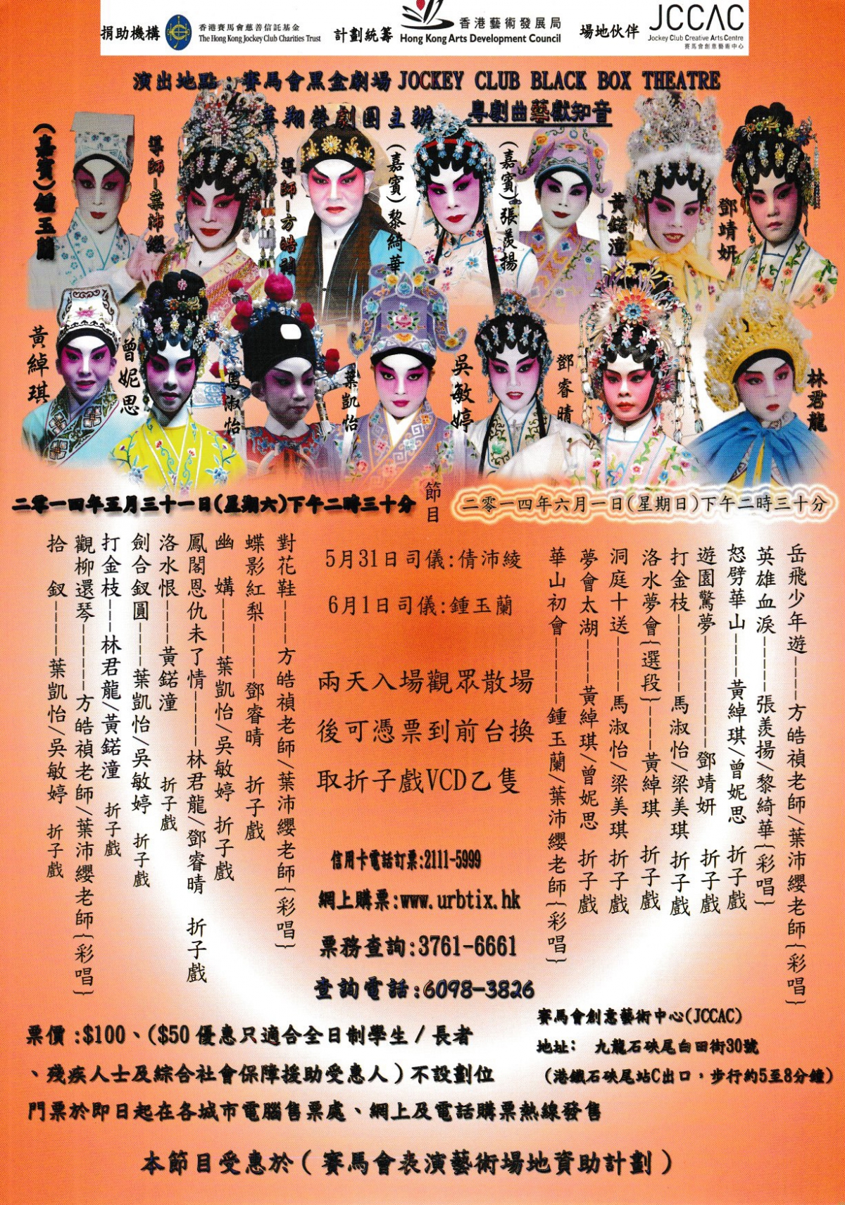劇目:《岳飛少年遊》(彩唱)《英雄血淚》(彩唱)《怒劈華山》(折子戲)《遊園驚夢》(折子戲)《打金枝》(折子戲)《洛水夢會》選段(折子戲)《洞庭十送》(折子戲)《夢會太湖》(折子戲)《華山初會》(彩唱)
