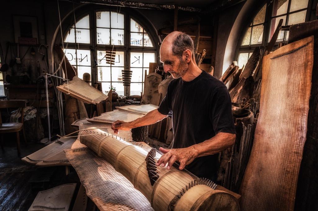 Starting from his formation as a violin builder, he experimented on basic sound laws, inventing unique types of string instruments, either to be plugged or bowed.