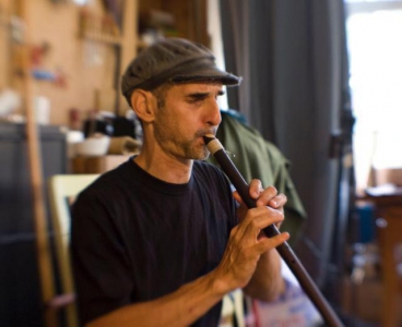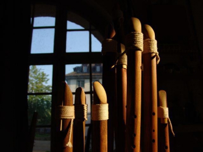 Later he investigated the field of wind instruments, developing flutes of various tonalities and specially the ”Chalumeau”, an archetypal handcrafted clarinet with no metal keys, but holes that should be closed by the legs!