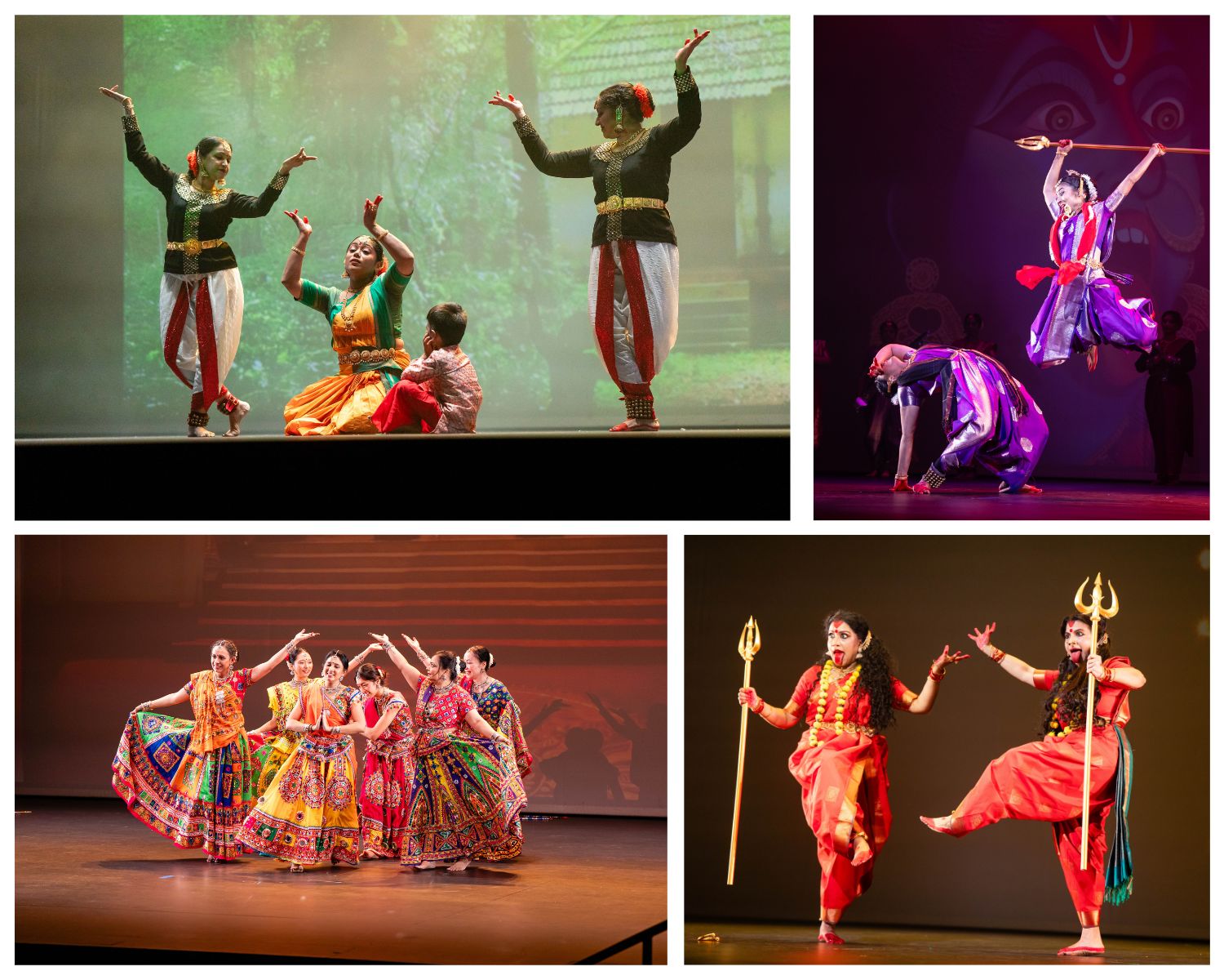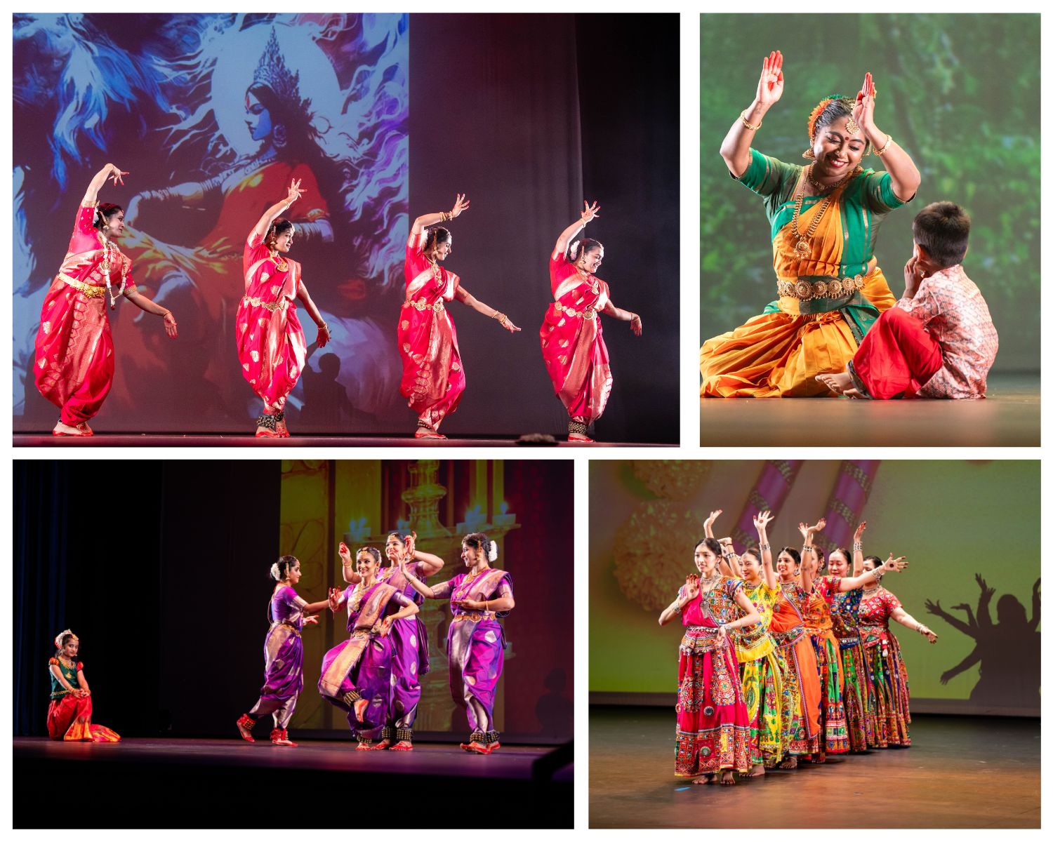 This radiant performance unfolds across six distinct dance genres, weaving a rich tapestry of rhythm, emotion, and storytelling. It seamlessly fuses classical Indian traditions like Mohiniyattam and Bharatanatyam with semiclassical expressions inspired by Maha Shivaratri celebrations, and vibrant folk narratives that echo the soul of India's cultural heritage.