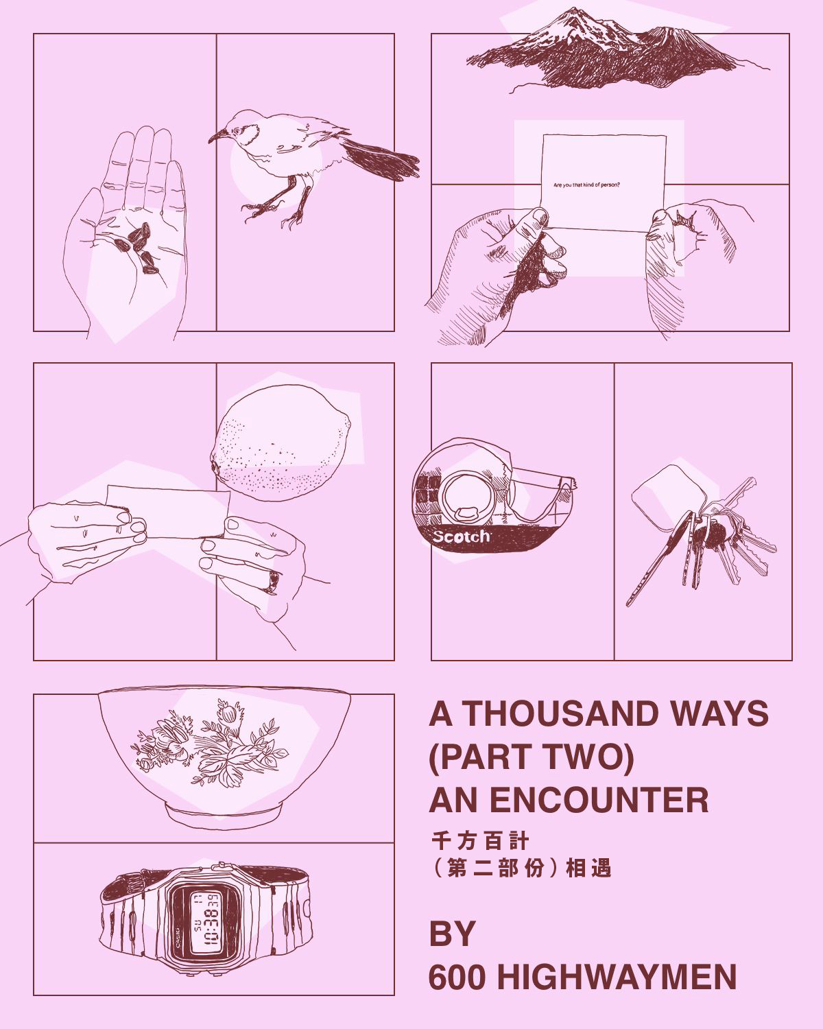 胡境陽近年來常為這種災劫感的遠近思索頗多,自問香港也正在中“輻射”,受著不同政治大小事的波及影響而產生種種餘震。因著這次“茶樓事件”的觸發,胡境陽開始創作劇本《案內人Hongkongshima》,故事中的「他」是一個出走日本的香港人,不停移動,自稱案內人,以手機直播代港人行腳日本,去到他們想去和去不到的地方。