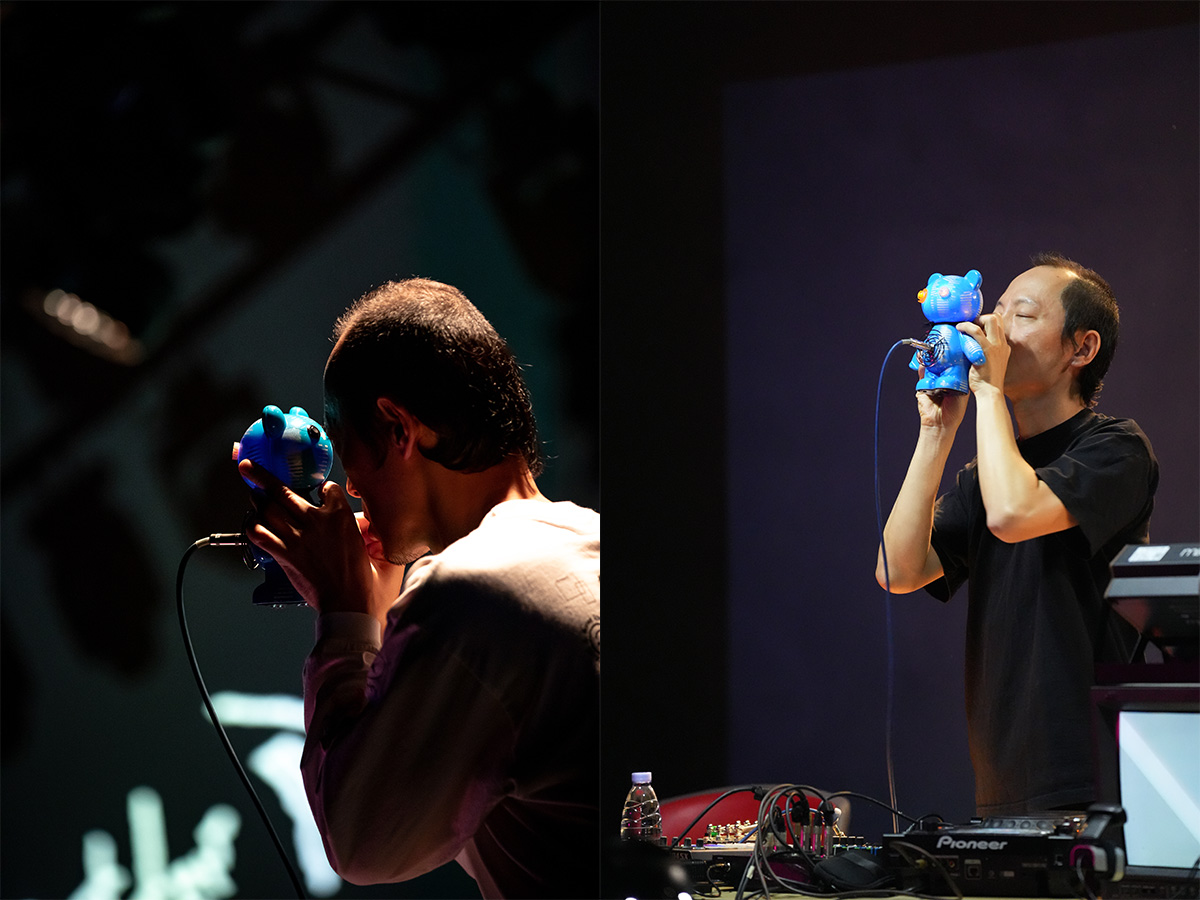 此次在作品《無無題》中,聲音擔任整個演出的龍骨主軸,且所有聲音都是現場製作,沒有預製音樂。「我們希望還原媒介本身的特質,例如在人聲中排除開說什麼,拋除了內容意義,聲音本身究竟是怎樣的。」現代劇場的科技越來越發達,不同劇場聲音效果不同,有追蹤式的沉浸音效,無論人多遠,聲音都像是離得很近。而今次演出的呈現會更赤裸一些,用聲音將遠與近的關係表現出來,再以身體、燈光等不同媒介去作回應。