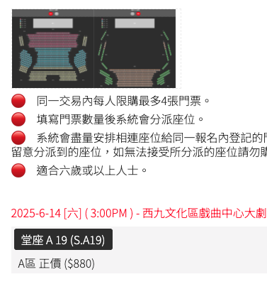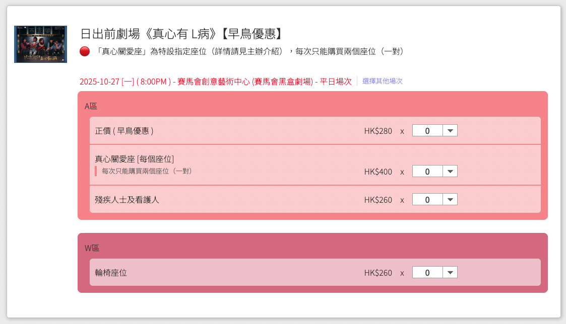 揀到心水座位之後,記得要揀返正確嘅門票種類。
