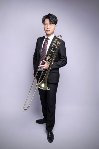 除作曲外,梁氏亦主修長號,現師從彭禮傑先生,曾為林灝弘先生及張應雄先生之學生。