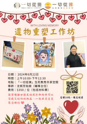 • 「一切從簡」殯儀社企——生死教育高級主任(輔導員 / 失胎支援)• 美國IAPC圖卡應用輔導執行師• 台灣悲傷療癒卡專業培訓證書• 基督教輔導學及基督教教育學士• 香港專業輔導協會 (HKPCA) 正式會員• 中國認證婚姻家庭諮詢師• 美國預設醫療照顧策劃師 (ACP Facilitator)• 美國殯葬協會NFDA禮儀策劃師培訓證書