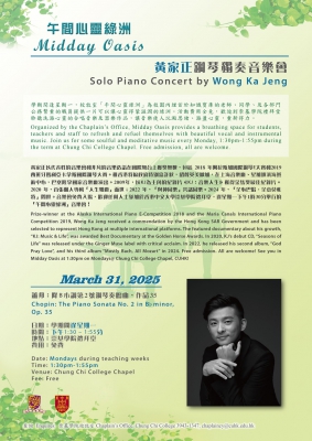 「午間心靈綠洲」: 吳美樂博士鋼琴獨奏會