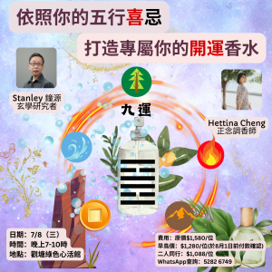 研習正念多年,將正念帶進調香過程,同時在調香過程中修習正念。她也是韓國 KDCA Perfume Master Class 天然精油香水調香師導師培訓證書課程之畢業學員。