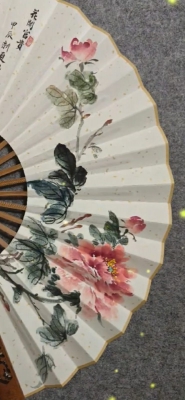 中國寫意水墨畫~折扇牡丹