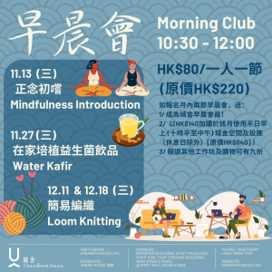 城舍早晨會 - 11月/ 12月 ( 正念初嚐/ 在家培植益生菌飲品/ 簡易編織 )