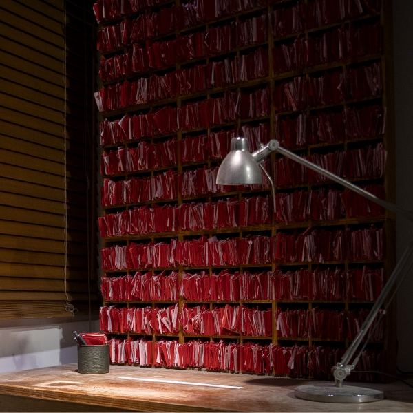 A: 《紅牆》這個作品由30萬張紙張組成,是一個回應當下社會現象的作品。看著新聞中部分書籍下架的報導,以及各種自我審查的現象出現,自己也會覺得有些悲哀,令我重新去思考自身與界線的關係。