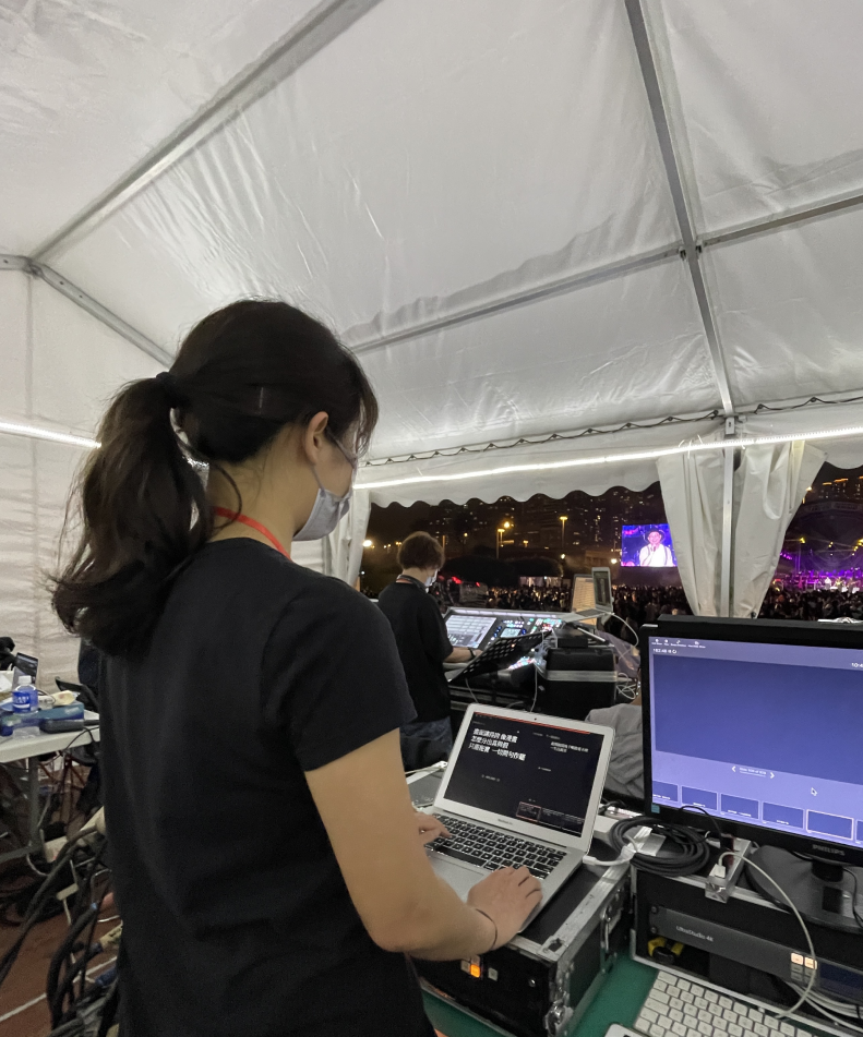 比較深刻的實習經歷是參與 RubberBand 在西九新戶外場地竹翠公園的演唱會,演出前落大雨,預備多充足也好,有突發都要執生。記得第一日完場後,導演覺得添加歌詞字幕會更好,我們幾個一起實習的同學就通宵製作,當日下雨好凍,我們凍到手腳都快要失去知覺。但是,第二日觀眾跟著字幕高歌,氣氛更熱烈時,我們即刻覺得很值得,而且和同事共患難,越辛苦回憶越深刻。