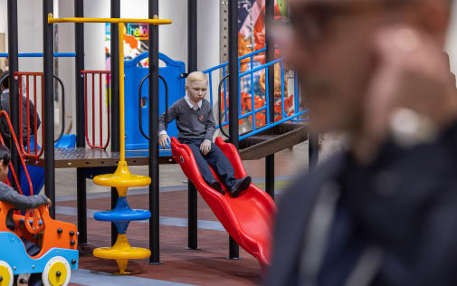 View of 'I Can Sleep Standing, Let Alone Sitting' (2025)by AK Kan & Kin Lam in 'WEIRD SENSATION FEELS GOOD: The World of ASMR' at AIRSIDE, presented in collaboration with ArkDes and the Design Museum. 2025.