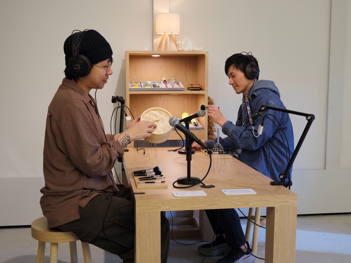 Kin Lam and AK Kan in 'WEIRD SENSATION FEELS GOOD: The World of ASMR' at AIRSIDE, an exhibition presented in collaboration with ArkDes and the Design Museum. 2025. Photo: South Ho