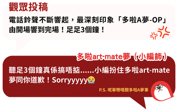💬「睇musical聽到後邊有人講『吓又係呢首?』仲要唔係細細聲,到底咩事?」