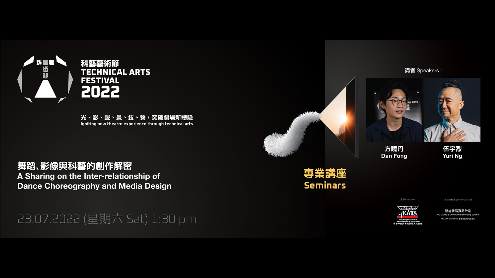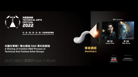 曾參與多個海外及本地表演項目科藝技術顧問的陳力恒與曾贏得2017年世界劇場設計展「佳作:TIP劇場創新發明獎」的燈光設計師黃子健,將於講座中解說他們的舞台幕後黑科技與設計經驗。