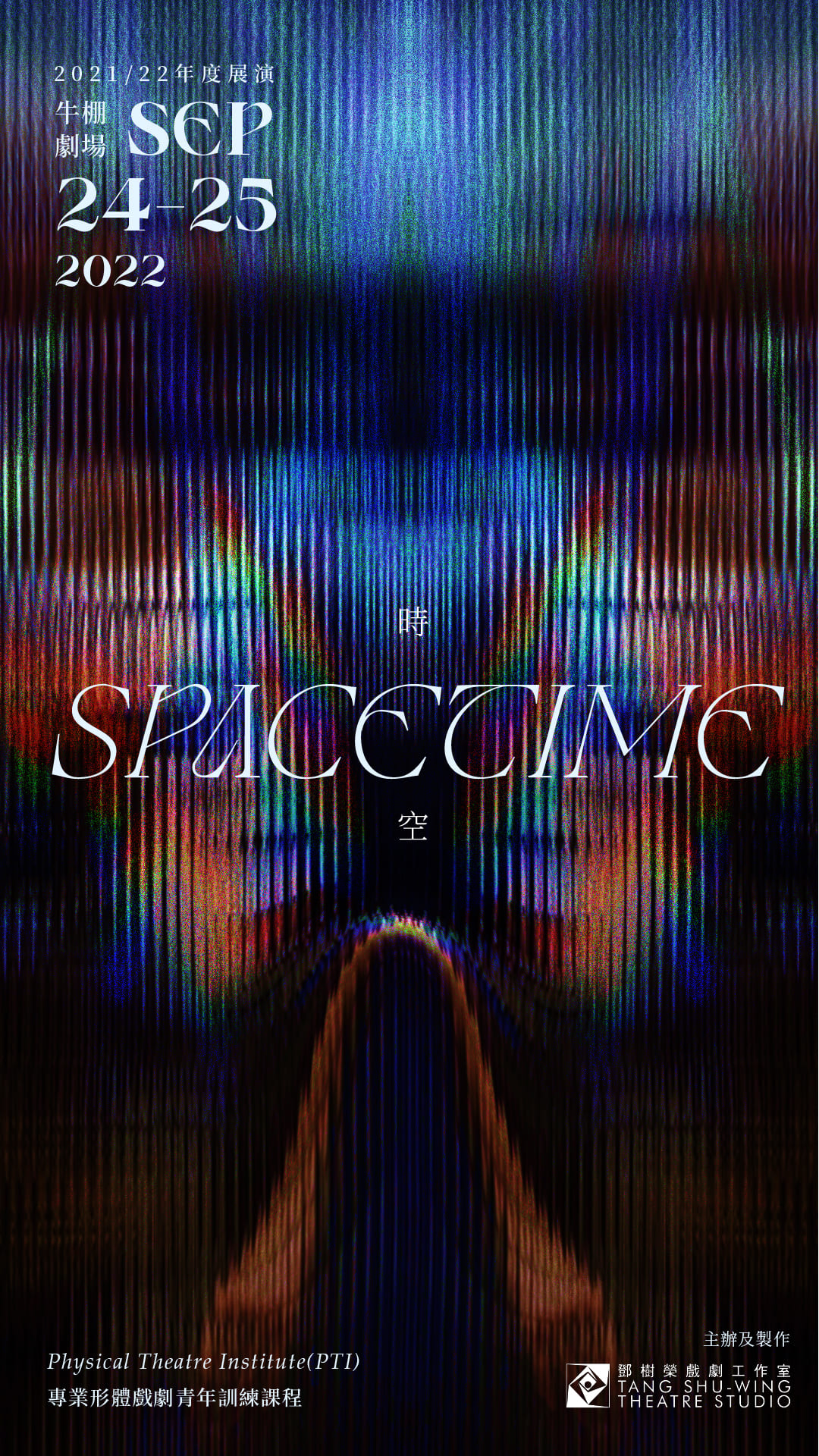 表演就是創造出自己的時空。專業形體戲劇青年訓練課程為年青人提供以身體為出發點的戲劇表演及創作訓練,學員透過身體認識自己,繼而探索自我表達的方法。課程每年舉行展演,今年主題為「時空」( Spacetime )。表演,涉及時間和空間;身體則是界定時間和空間的工具。在舞台上,微觀地看,每一個身體都有一個屬於自己的時空;宏觀地看,身體之間實則存在著緊密的交流,每一個時空都在互相碰撞。或許我們改變不了物理上的時間和空間,但我們可以用無窮的想像力創造出自己的時空。