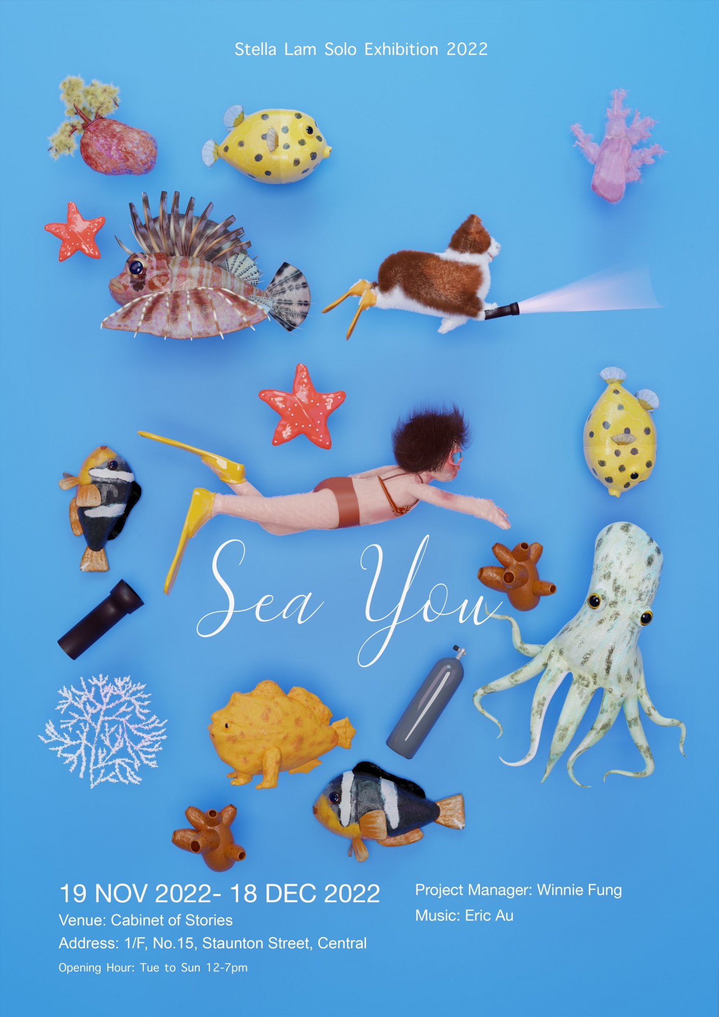 Stella 將她潛水的經歷帶進這次展覽,將海洋帶給她的神秘魔幻感受呈現觀眾眼前。她以畫作、雕塑和互動裝置等多樣創作,營造不同空間,讓觀眾沉浸於她所感受到的海洋。在她看來,美麗的景觀、有趣的生物,原來在香港的深海之中比比皆是。正如她這一位潛水新人發現香港海洋所帶來的驚喜,Stella希望觀眾透過在這個展覽的經驗,體會每個人每次接觸新事物時,也可懷抱好奇。