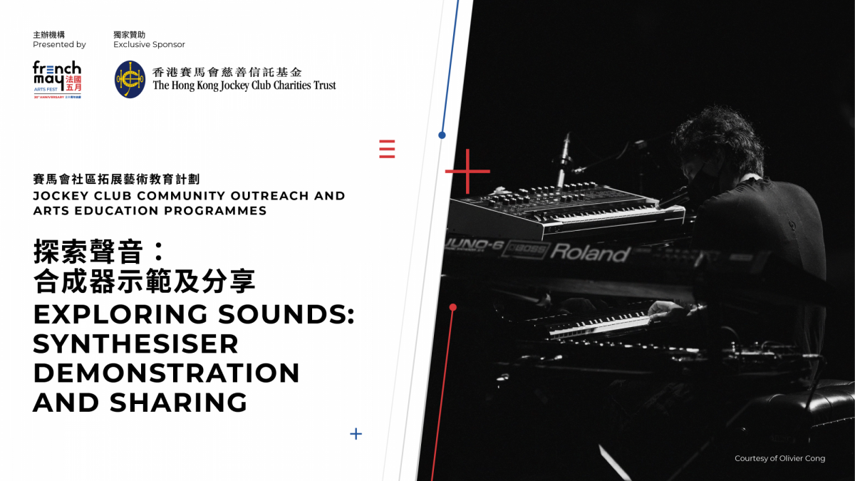 模組合成器(modular synthesiser)早於六十年代出現。與傳統樂器相比,合成器為音樂家提供了控制聲音、以至音樂創作上的更多可能。 本地音樂人江逸天近年在其作品和現場表演中均常用到模組合成器。他將以為法國五月藝術節最新創作的《His Temple》為例子,示範並分享如何在音樂創作中運用合成器,尋找別樹一格的音色,拓闊獨奏的舞台上的聲音。