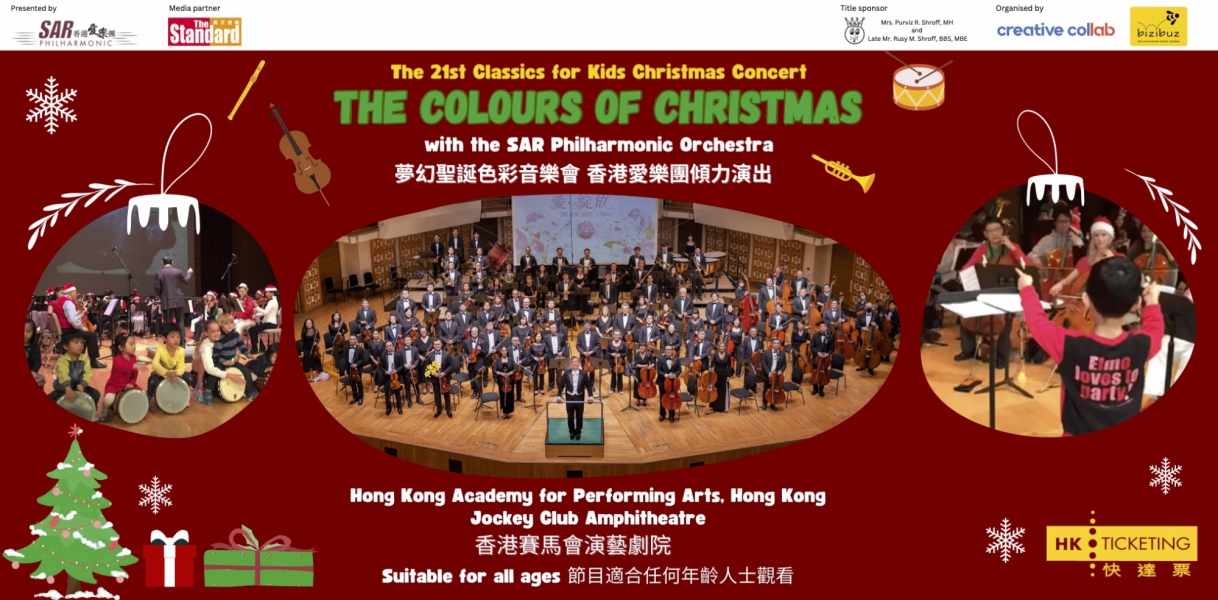 準備好迎接一場溫馨的假日奇遇!我們將帶您進入一場90分鐘的多感官聖誕慶典,感受聖誕節的色彩與音樂,與香港愛樂團及一眾特別表演嘉賓一同慶祝聖誕!在這場魔幻的音樂會中,您會享受到經典的迷人樂曲和深受大家喜愛的聖誕樂章。適合一家大細一同觀賞,歡度聖誕!為帶給您一個非同凡響的禮遇,座位A18 – 33及座位B23 - 41(票價 $650)上12歲以下的小朋友將獲邀請擔任管弦樂隊的指揮!音樂會部份收益用於支持音樂獎學金。