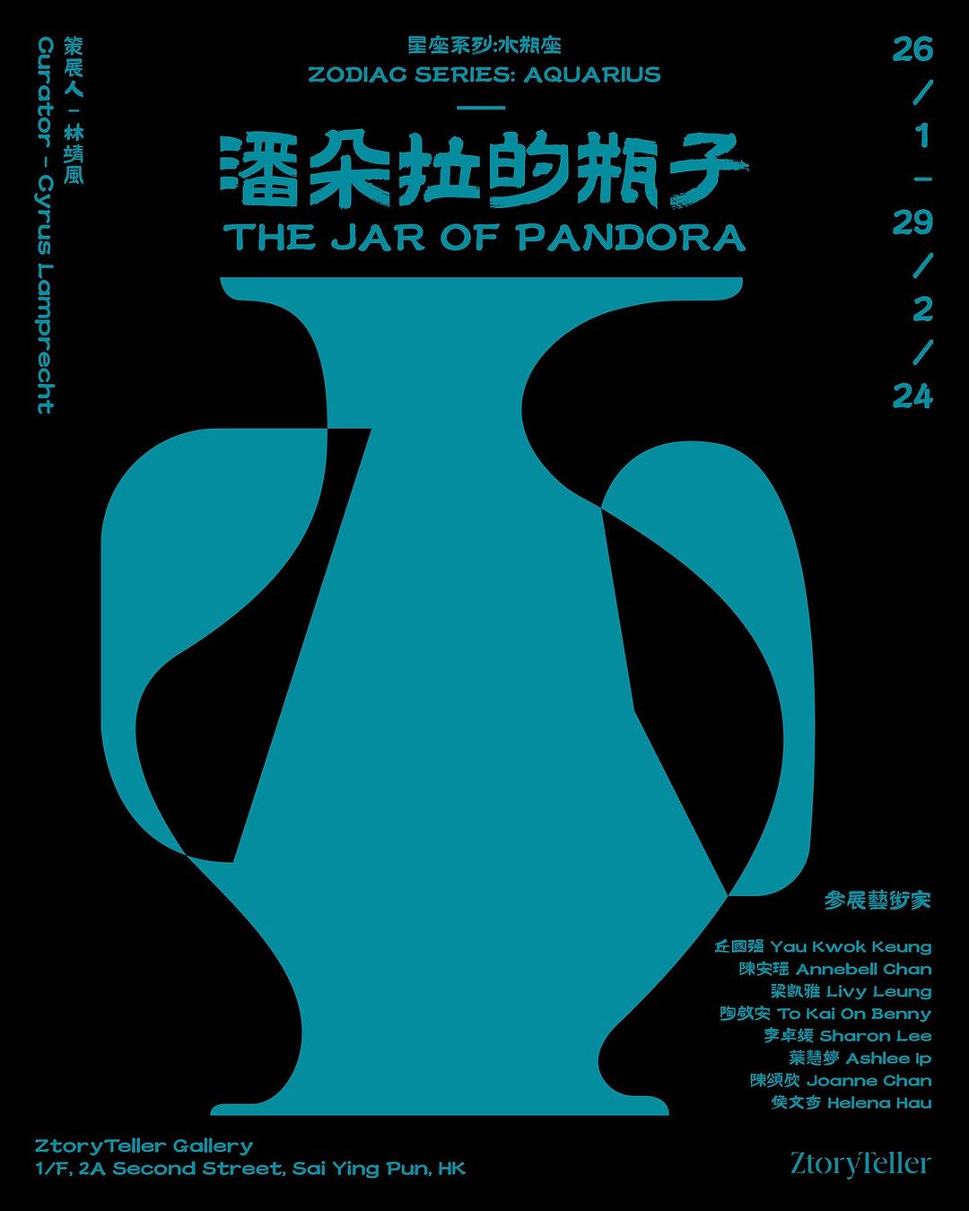 以水瓶座及潘朵拉神話為主題的展覽「潘朵拉的瓶子」,為策展人林靖風於2024年開展的長期藝術項目 「星座系列」的第一章。其中集結了八位同為水瓶座的藝術家:丘國強、陳安瑤、梁凱雅、陶啟安、李卓 媛、葉慧婷、陳頌欣及侯文奇,以好奇心為主導的作品,引領觀賞者經歷一段揭露苦難與希望的過程。