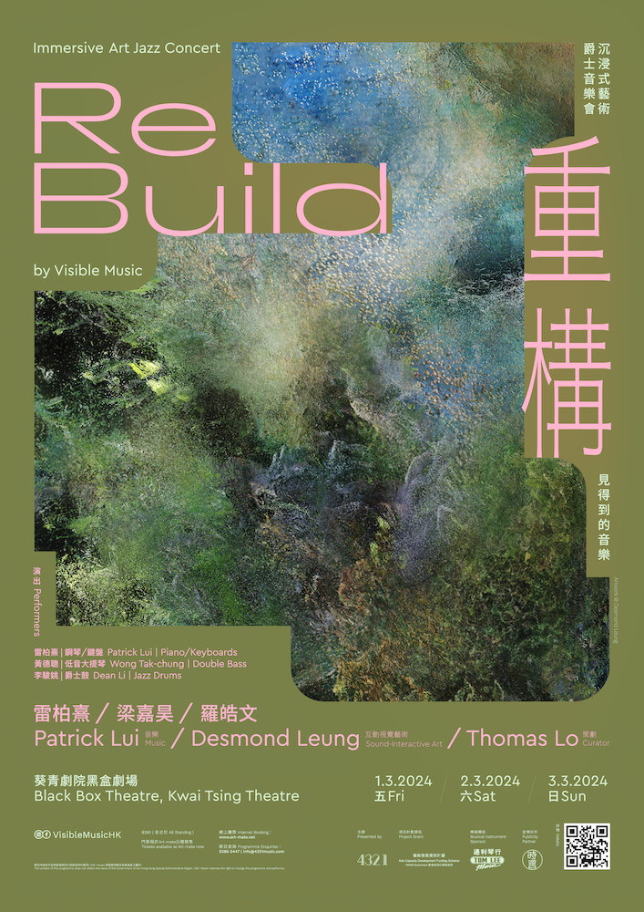《見得到的音樂:重構》由432 1 Music主辦,羅皓文(策劃)、雷柏熹(音樂),以及梁嘉昊(聲音互動視覺藝術)聯手呈獻,是一場探索頻率與重構的沉浸式藝術音樂之旅。作為《見得到的音樂.觸得到的音符》計畫的第二個篇章,它穿越《進.化》的混沌,帶領我們重新與大自然連結,融入和諧的頻率。