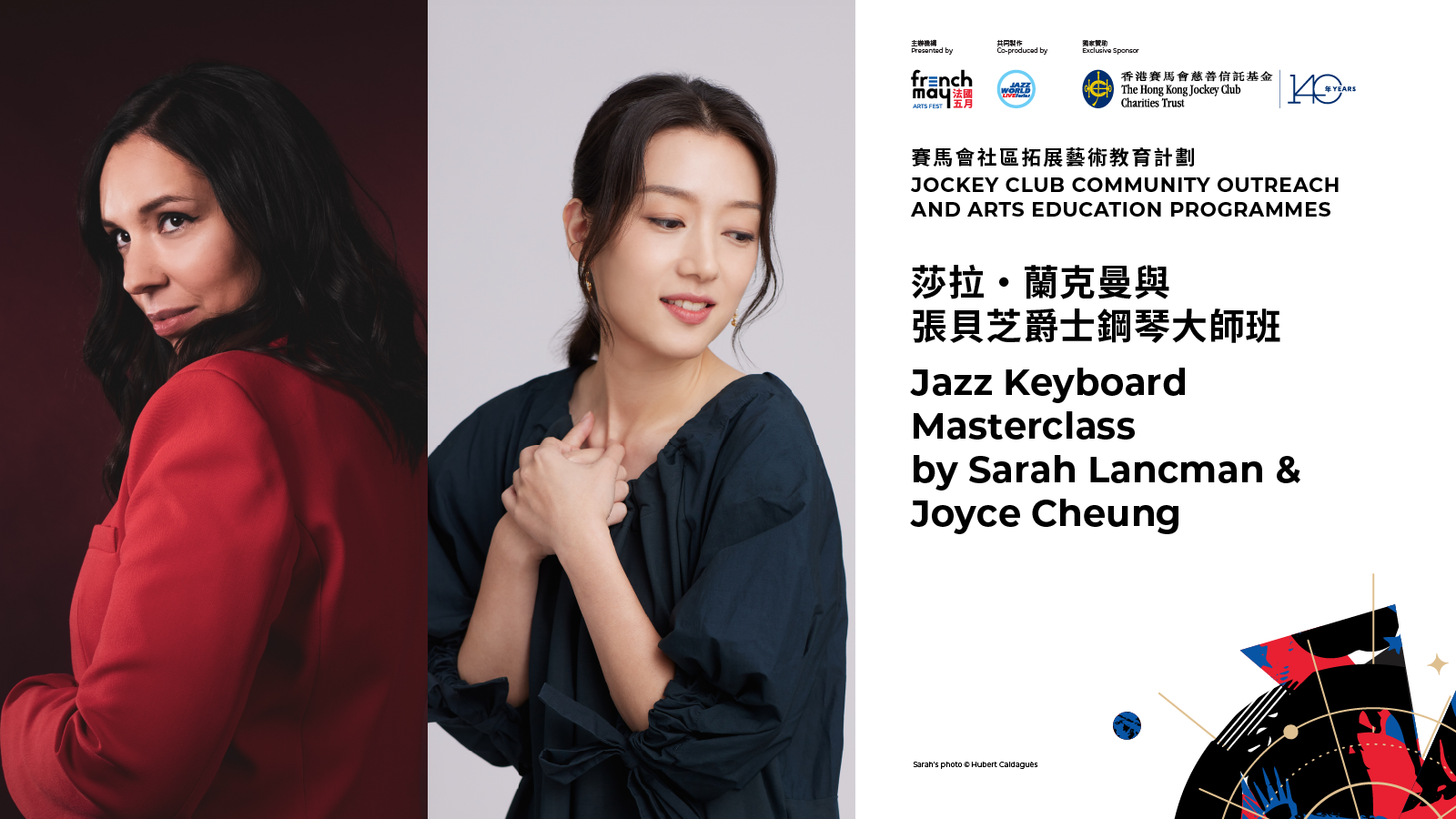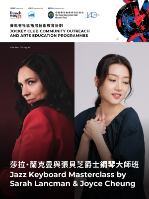 國際巡演屢獲好評、來自巴黎的歌手及鋼琴家莎拉·蘭克曼與備受矚目的香港爵士鋼琴演奏家張貝芝,將攜手在這場大師班中分享她們對爵士鋼琴演奏的獨到見解與心得。兩位的音樂歷程均以古典音樂為起點,卻在演奏爵士音樂上各自展示出獨樹一幟的風格和手法。她們將透過精選的古典樂章與爵士經典,示範並探討異同之處,剖析演奏爵士鋼琴的技巧,以及在鍵盤伴奏中建構和聲的奧妙。這場大師班不僅適合鍵盤演奏者,亦歡迎對自彈自唱技巧感興趣的樂迷。